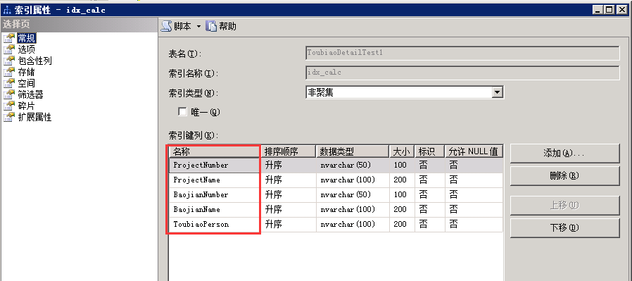 在索引鍵列添加ProjectNumber, ProjectName, BaojianNumber, BaojianName, ToubiaoPerson。如圖: