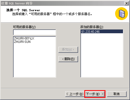 5、您添加的服務(wù)器IP即可增加到右側(cè),然后點下一步,如下圖: