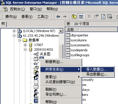 12、在表上點擊右鍵,選擇所有任務(wù),選擇導(dǎo)入數(shù)據(jù),如下圖所示: