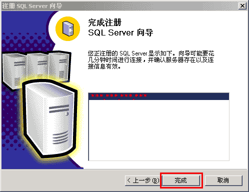 8、完成SQLserver注冊,點擊完成,如下圖: