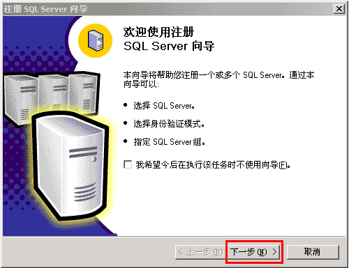 3、彈出SQLserver注冊向?qū)?,點下一步,如下圖: