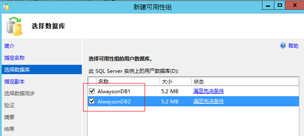 3)為可用性組選擇數(shù)據(jù)庫,即哪些數(shù)據(jù)庫為為當(dāng)前可用性組