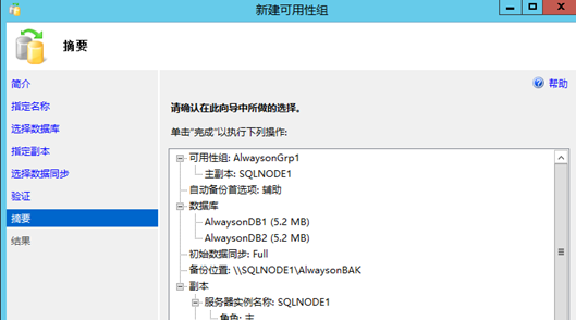 此處選擇了完整同步,即SQLserver會自動去備份以及在輔助副本上進行還原