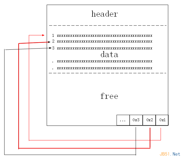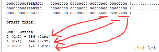 有沒有看到上面(0,1,2)三個槽位,并且都有相應的偏移地址(0x7e,0x92,0xba),這個地址就指向了Data區(qū)域?qū)嶋H記錄的偏移地址。