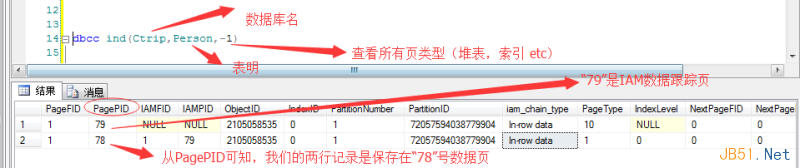 剛才也說了,數(shù)據(jù)頁有很多種,默認說的都是表數(shù)據(jù)頁,其實還有IAM數(shù)據(jù)頁,沒什么稀奇的,IAM就是用來跟蹤表數(shù)據(jù)頁的,所以上面的圖中,IAMFID字段為Null的記錄就是IAM頁,下面的PagePID=78的,就是表數(shù)據(jù)頁。