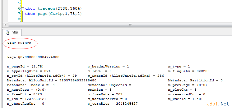 2>使用dbcc page 命令導出1號文件下面的78號數(shù)據(jù)頁(pageFID:pagePID)=(1:78),就像下面這樣。。。