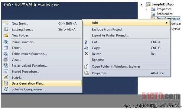 這時(shí),我們可以開(kāi)始添加數(shù)據(jù)生成計(jì)劃了。在項(xiàng)目中鼠標(biāo)右鍵后的彈出菜單中,選擇“Data Generation Plan”,如下圖: