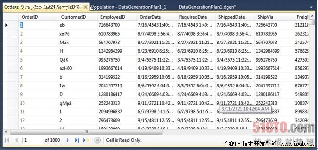 最后,數(shù)據(jù)生成后,可以到Sql Server中檢查生成的數(shù)據(jù),如下圖,可見(jiàn)Visual Studio的數(shù)據(jù)生成器的確為我們生成了大量的測(cè)試數(shù)據(jù)。