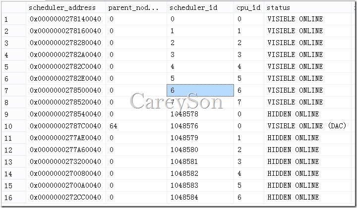 SQL Server中每一個邏輯CPU都有一個與之對應的Scheduler,只有拿到Scheduler所有權的任務才允許被執(zhí)行,Scheduler可以看做一個隊SQLOS來說的邏輯CPU。您可以通過sys.dm_os_schedulers這個DMV來看系統(tǒng)中所有的Scheduler,如圖1所示。
