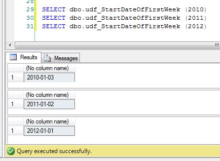 CREATE FUNCTION udf_StartDateOfFirstWeek