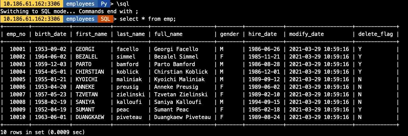 10.186.61.162:3306 employees SQL > desc emp;