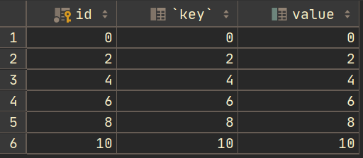 假設(shè)我們有表t結(jié)構(gòu)如下,里面的初始數(shù)據(jù)行為:(0,0,0),(1,1,1),(2,2,2),(3,3,3),(4,4,4),(5,5,5)