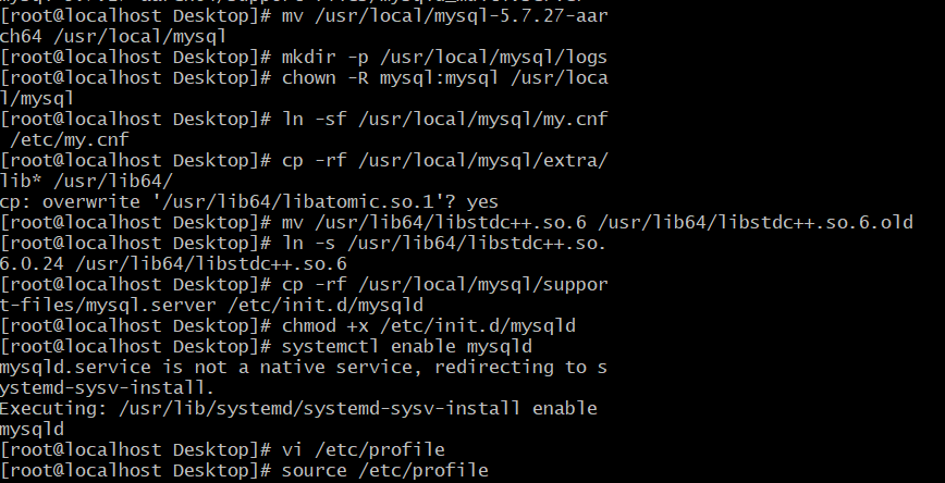 # tar xzvf mysql-5.7.27-aarch64.tar.gz -C /usr/local/