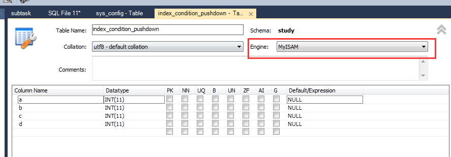 我們以自己建立的study庫中的index_condition_pushdown表為例: