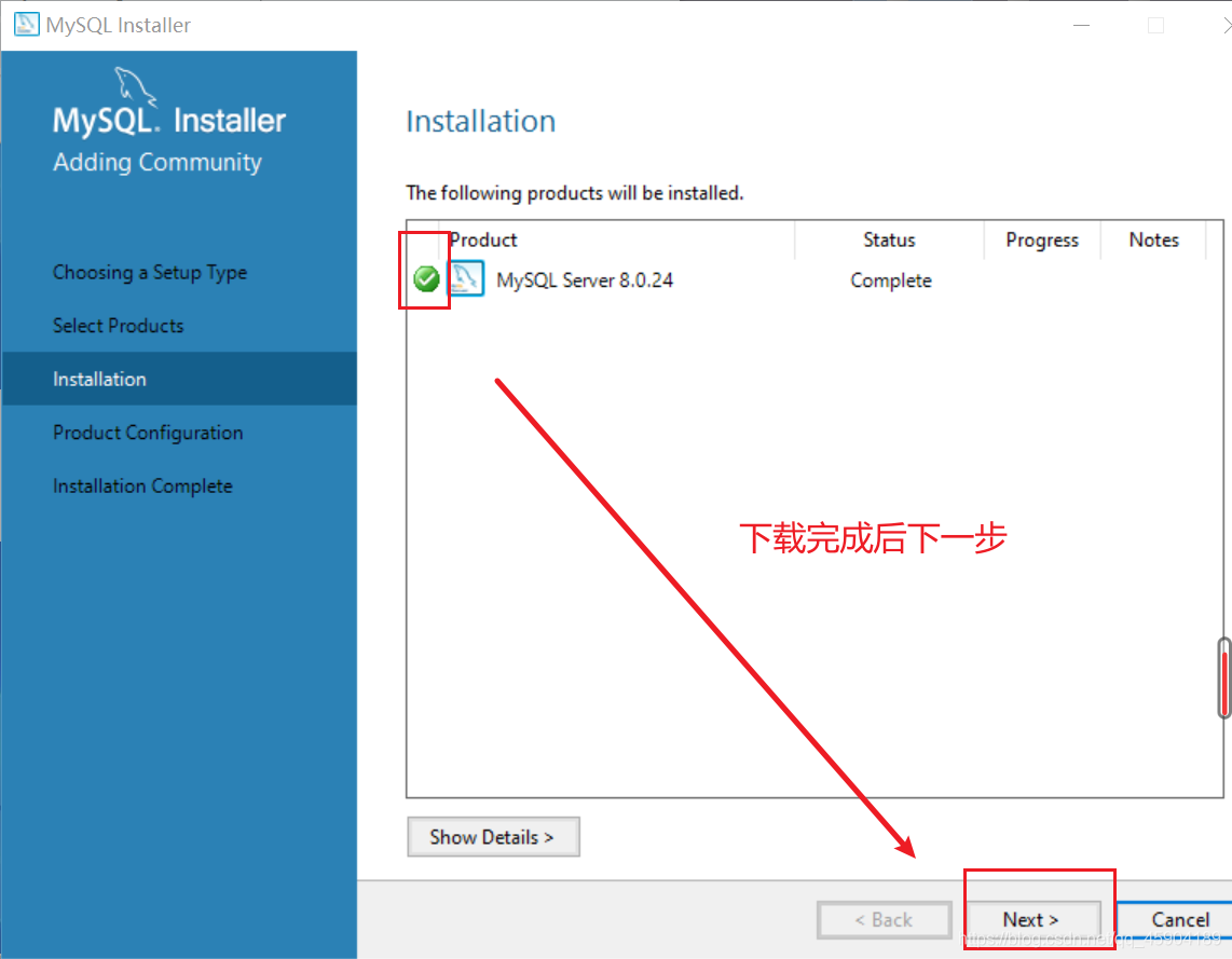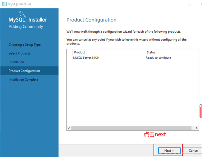 點擊Next,點擊MySQL Sever,選擇后再點擊Execute