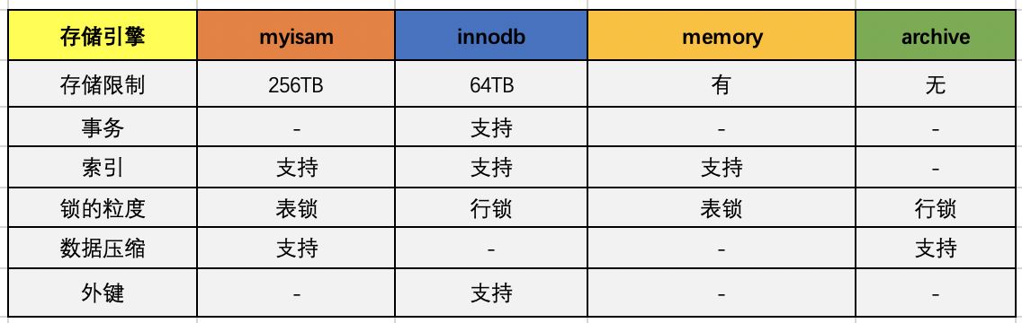 在執(zhí)行器的階段,此時(shí)會(huì)調(diào)用存儲(chǔ)引擎的API,API會(huì)調(diào)用存儲(chǔ)引擎,主要有一下存儲(chǔ)的引擎,不過常用的還是myisam和innodb: