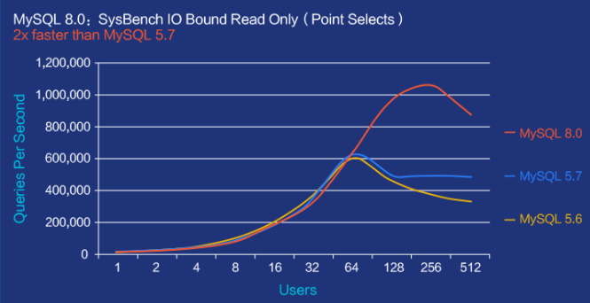 性能提升級(jí)。官方表示MySQL 8.0 的速度要比 MySQL 5.7 快 2 倍。MySQL 8.0 在讀/寫(xiě)工作負(fù)載、IO 密集型工作負(fù)載、以及高競(jìng)爭(zhēng)工作負(fù)載時(shí)相比MySQL5.7有更好的性能