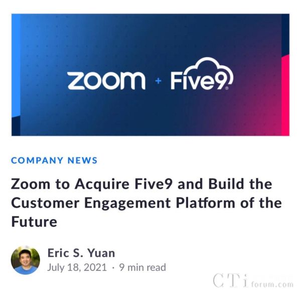 作為Zoom的首席執(zhí)行官,我很高興地宣布,我們已達(dá)成協(xié)議,收購(gòu)智能云聯(lián)絡(luò)中心的領(lǐng)先供應(yīng)商Five9.有關(guān)此新聞的更多詳細(xì)信息,請(qǐng)參閱我們的新聞稿。