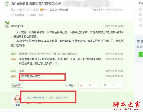 上圖可知,我把百度ID做成了廣告,并且是合法的廣告,根據(jù)百度注冊ID要求,這里可以留下自己的QQ或者微信,在百度知道吸粉的時候,只需要簡單的在回答內(nèi)容中加一句,看ID,如下圖: