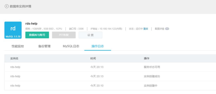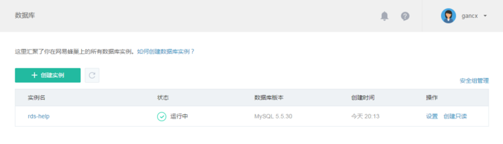 1.在數(shù)據(jù)庫的主界面,點擊該實例在「操作」列的「設(shè)置」鏈接,如下圖所示: