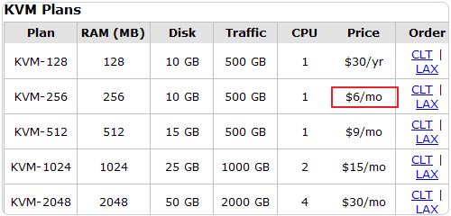 3、OpenVZ和KVM VPS都有年付的VPS主機(jī),最便宜的一款是256MB內(nèi)存的VPS只要4美元/月。