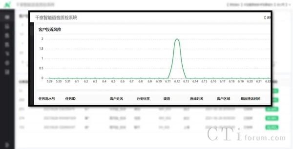 風(fēng)險看板包括客戶投訴風(fēng)險統(tǒng)計圖和風(fēng)險錄音列表。