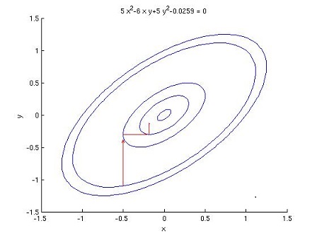 對(duì)于w,每次迭代,固定其他維度不變,只對(duì)其一個(gè)維度進(jìn)行搜索,確定最優(yōu)下降方向(示意圖如下),公式表達(dá)如下: