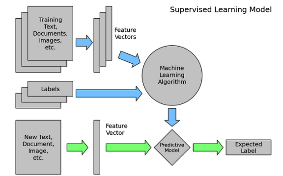 機(jī)器學(xué)習(xí)可以分為無監(jiān)督學(xué)習(xí)(unsupervised learning)和有監(jiān)督學(xué)習(xí)(supervised learning),在工業(yè)界中,有監(jiān)督學(xué)習(xí)是更常見和更有價(jià)值的方式,下文中主要以這種方式展開介紹。如下圖中所示,有監(jiān)督的機(jī)器學(xué)習(xí)在解決實(shí)際問題時(shí),有兩個(gè)流程,一個(gè)是離線訓(xùn)練流程(藍(lán)色箭頭),包含數(shù)據(jù)篩選和清洗、特征抽取、模型訓(xùn)練和優(yōu)化模型等環(huán)節(jié);另一個(gè)流程則是應(yīng)用流程(綠色箭頭),對(duì)需要預(yù)估的數(shù)據(jù),抽取特征,應(yīng)用離線訓(xùn)練得到的模型進(jìn)行預(yù)估,獲得預(yù)估值作用在實(shí)際產(chǎn)品中。在這兩個(gè)流程中,離線訓(xùn)練是最有技術(shù)挑戰(zhàn)的工作(在線預(yù)估流程很多工作可以復(fù)用離線訓(xùn)練流程的工作),所以下文主要介紹離線訓(xùn)練流程。