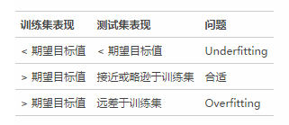 在實(shí)戰(zhàn)中,可以基于模型在訓(xùn)練集和測(cè)試集上的表現(xiàn)來確定當(dāng)前模型到底是Underfitting還是Overfitting,判斷方式如下表: