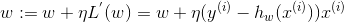 隨機(jī)梯度下降(Stochastic Gradient Descent),每一步隨機(jī)選擇一個(gè)樣本,計(jì)算相應(yīng)的梯度,并完成w的更新,如下式,