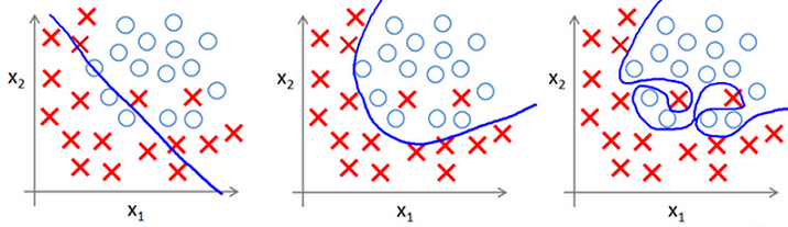 所謂Underfitting,即模型沒有學(xué)到數(shù)據(jù)內(nèi)在關(guān)系,如下圖左一所示,產(chǎn)生分類面不能很好的區(qū)分X和O兩類數(shù)據(jù);產(chǎn)生的深層原因,就是模型假設(shè)空間太小或者模型假設(shè)空間偏離。