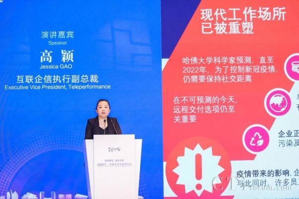 Teleperformance北京互聯(lián)企信信息技術(shù)有限公司執(zhí)行副總裁高穎女士受邀參加本次峰會(huì)并作為演講嘉賓,進(jìn)行了“后疫情時(shí)代虛擬遠(yuǎn)程辦公的新常態(tài)”的主題演講。