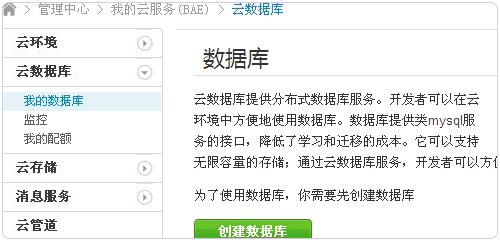 4、進(jìn)入云數(shù)據(jù)庫(kù) :http://developer.baidu.com/bae/bdbs/db/