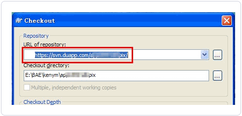 5、URL框輸入應(yīng)用的SVN地址,剛才提示過(guò)讓你記下SVN地址備用,點(diǎn)擊“確定”,之后會(huì)提示輸入(百度)賬號(hào)及密碼即可。