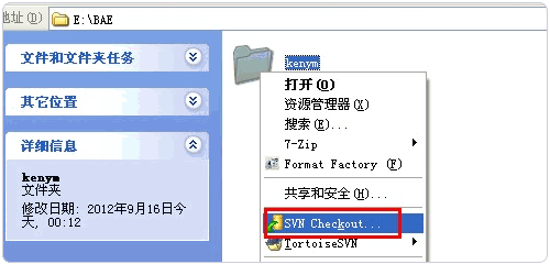 4、我這里簡(jiǎn)要的說(shuō)明如何上傳,本地創(chuàng)建一個(gè)用于存放從SVN倉(cāng)庫(kù)中checkout的代碼的文件夾,點(diǎn)擊文件夾右鍵,點(diǎn)擊“SVN Checkout”(SVN 檢出)