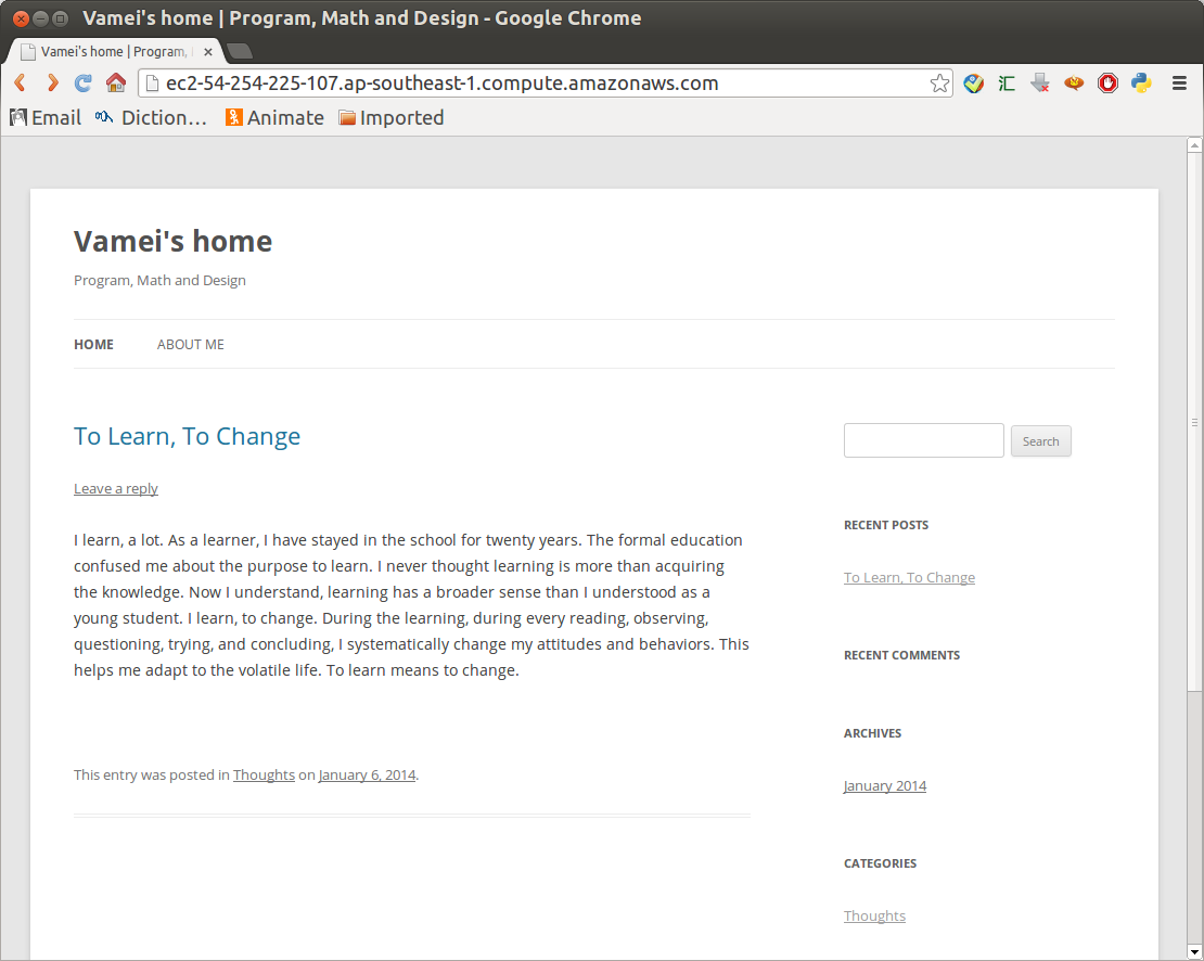 AWS云讓曾經(jīng)復(fù)雜而專(zhuān)業(yè)的服務(wù)器架設(shè)和管理變得簡(jiǎn)單。正如上面看到的,借用AWS云和WordPress這樣的神器,程序員可以十分鐘的時(shí)間搞定一個(gè)網(wǎng)站,簡(jiǎn)單而迅速。