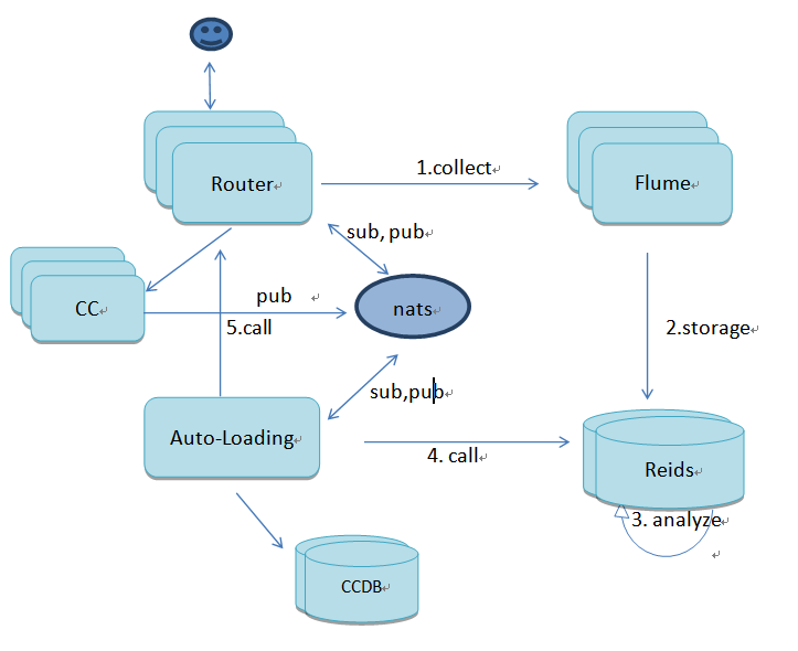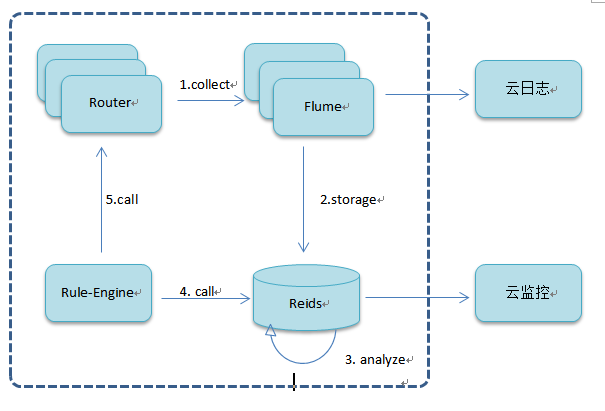 所有router服務(wù)器都安裝了agent,flume集群實(shí)時(shí)收集router的nginx訪問(wèn)日志,保存在redis中并定期進(jìn)行清理,同時(shí)將分析結(jié)果保存在同一redis集群中,規(guī)則引擎從redis中取得數(shù)據(jù),與此應(yīng)用的規(guī)則對(duì)比,判斷是否觸發(fā)規(guī)則,之后調(diào)用cloudcontroller restful api 來(lái)擴(kuò)展或縮減實(shí)例數(shù)。