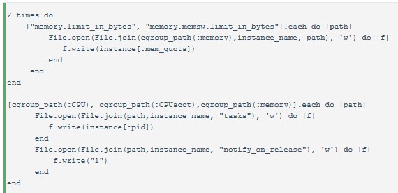 接著將實(shí)例的進(jìn)程ID寫(xiě)入各個(gè)子系統(tǒng)的tasks文件中,注意到每個(gè)子模塊的notify_on_release都設(shè)置為1,這是告訴cgroup,如果應(yīng)用消耗的資源超過(guò)限制,就kill掉進(jìn)程。Warden中寫(xiě)了個(gè)OomNotifier服務(wù)來(lái)監(jiān)控內(nèi)存的消耗情況,然后做具體操作。個(gè)人覺(jué)得太復(fù)雜,可能OomNotifier有更“溫柔”的處理方法或有更多邏輯處理。但是目前來(lái)看,OomNotifier 只是做了kill操作。