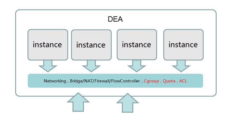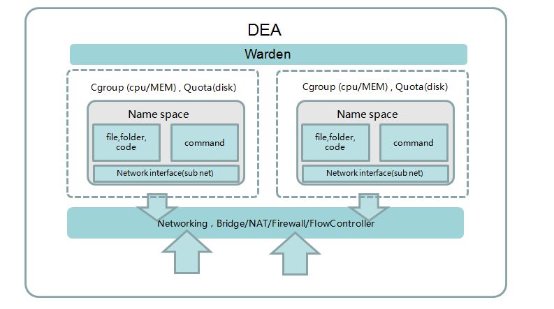 Cloud Foundry用warden來(lái)實(shí)現(xiàn)資源隔離與訪問(wèn)控制的,但是JAE的第一個(gè)版資源隔離策略使用了vcap dev,當(dāng)時(shí)沒(méi)有warden。在當(dāng)時(shí)的背景下,Cloud Foundry官網(wǎng)還未遷移至v2版、業(yè)內(nèi)的成功應(yīng)用也比較少, JAE采取穩(wěn)中求進(jìn)的方案,即在vcap dev的基礎(chǔ)上,借鑒了warden思路,以此來(lái)實(shí)現(xiàn)資源隔離和訪問(wèn)控制。下面,我們將詳細(xì)介紹JAE的第一版資源隔離實(shí)現(xiàn)方法,該方法部署起來(lái)所需的資源比較靈活,既支持單機(jī)部署也支持多機(jī)部署,對(duì)個(gè)人開(kāi)發(fā)者有很好的借鑒參考。