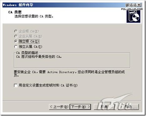 第五步:在windows組件向?qū)A類型設(shè)置窗口中選擇獨立根CA。