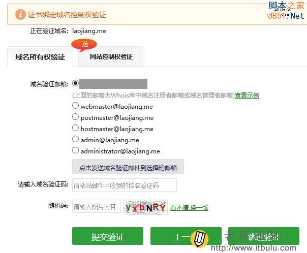 這里需要驗證域名的所有權(quán),發(fā)送WHOIS郵件或者網(wǎng)站控制權(quán)驗證。