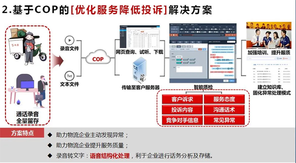 ?。?)掌握真實(shí)的大數(shù)據(jù):COP助力智能質(zhì)檢及大數(shù)據(jù)等創(chuàng)新應(yīng)用,集約全國(guó)網(wǎng)點(diǎn)的運(yùn)營(yíng)情況,挖掘真實(shí)業(yè)務(wù)場(chǎng)景的“大數(shù)據(jù)”寶藏,真正做到業(yè)務(wù)運(yùn)營(yíng)中“取其精華加以推廣,優(yōu)化改善其糟粕”。