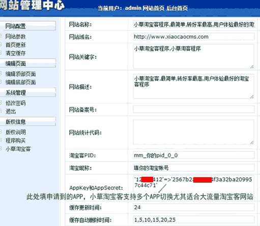 我們準(zhǔn)備好1-2個(gè)空間,PHP、ASP都行,再準(zhǔn)備一個(gè)域名,把小草淘寶客程序傳到空間就可以在后臺(tái)設(shè)置了。接下來(lái)就是把申請(qǐng)好的APP填入后臺(tái),點(diǎn)確定即可,所有的網(wǎng)站圖片都是調(diào)用淘寶商品數(shù)據(jù)。如果你的網(wǎng)站流量非常大,就有必要使用多個(gè)淘寶APPKey。