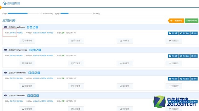 首先點擊下圖右上角的“新建應用”按鈕,在彈出的頁面里選擇第二項PHP應用,之后隨意(你想要的)填寫下面的二級域名即可。建立好之后就是下面的樣子,同時要看一下狀態(tài)是否正常,如果正常的話就可以往下繼續(xù)了,不正常的話再多建幾遍(確實只有這個方法)。