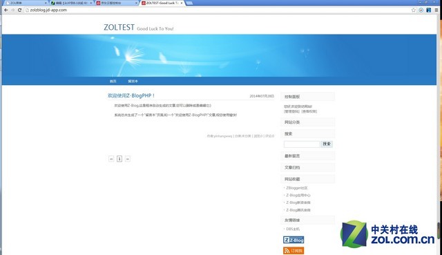 完成之后會進入ZBlog首頁,這里其實跟WordPress是相似的,沒什么太多可說的。