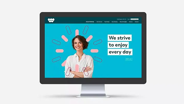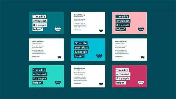 Webhelp重新升級了品牌視覺。舊標(biāo)識不僅棱角鋒利,造型亦古怪和隨意。新標(biāo)識用一個代表心臟的“w”來使其更親切和人性化,漂亮的色彩和圓角圖形的添加使形象平添了幾分趣味性,這些元素和色彩亦體現(xiàn)于本案的設(shè)計中。