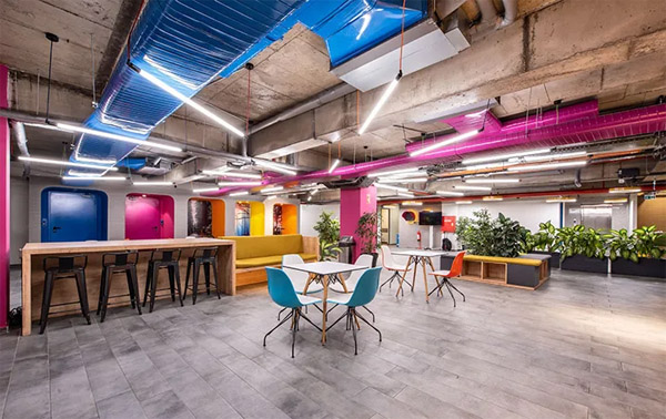 Webhelp伊茲密爾的辦公室是一個呼叫中心,與其它多家合作公司在一起共同辦公。比如:土耳其Pegasus航空、電商Trendyol、Garanti銀行。每家公司都有各自獨(dú)立的員工工作區(qū),并根據(jù)各自品牌而賦予個性化空間設(shè)計。除此之外,1300平方米的辦公室還設(shè)有共享的社交空間、休閑區(qū)、衛(wèi)生間和廚房設(shè)施。