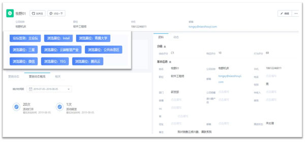 營銷線索360度視圖通過客戶線索標簽管理、客戶互動歷史、線索分值及熱度以及基本信息和渠道偏好,豐富展示線索信息,精準分析客戶畫像,洞察客戶需求,幫助企業(yè)有針對性地進行營銷推廣和活動邀請,讓營銷可以有的放矢,從而提升線索轉(zhuǎn)化率。