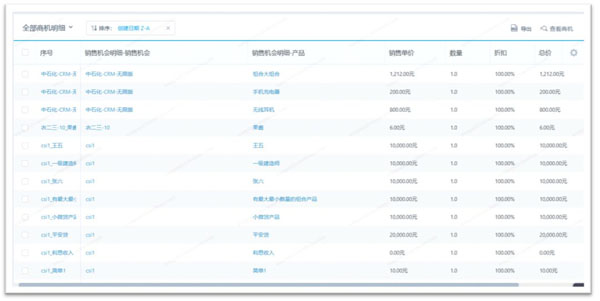 本次新版本發(fā)布,實現(xiàn)通過選擇產(chǎn)品、價格,快速查看商機明細詳情,及時了解訂單內(nèi)容、產(chǎn)品報價等信息,并支持一鍵導(dǎo)出。