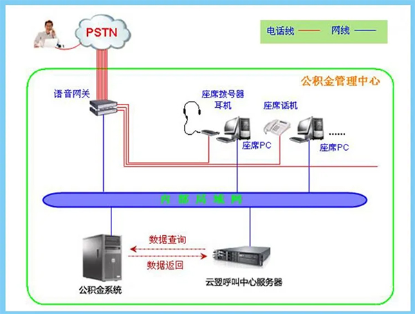 - 硬件:語音網(wǎng)關(guān)、話機、耳麥、云翌呼叫中心服務(wù)器(客戶自備PC電腦、電話線路、以及現(xiàn)有的公積金系統(tǒng))。